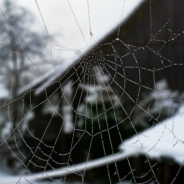 En daar hangt ze — klein, donker, met lange poten die langzaam over het web glijden.